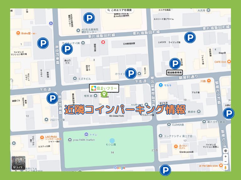 駐車場は近隣のコインパーキングをご利用くださいませ。料金はレシート送付で初期費用から割引させていただきます。